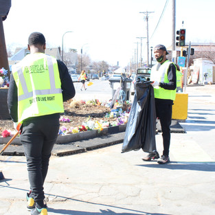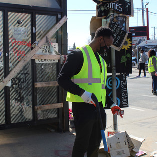 A team of about 6 volunteers went out to clean up left over debris and other trash that littered the street.